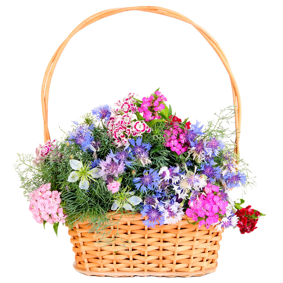 Гвоздика турецкая, василек, нигелла. Упаковка (Корзина, оазис, ящик).