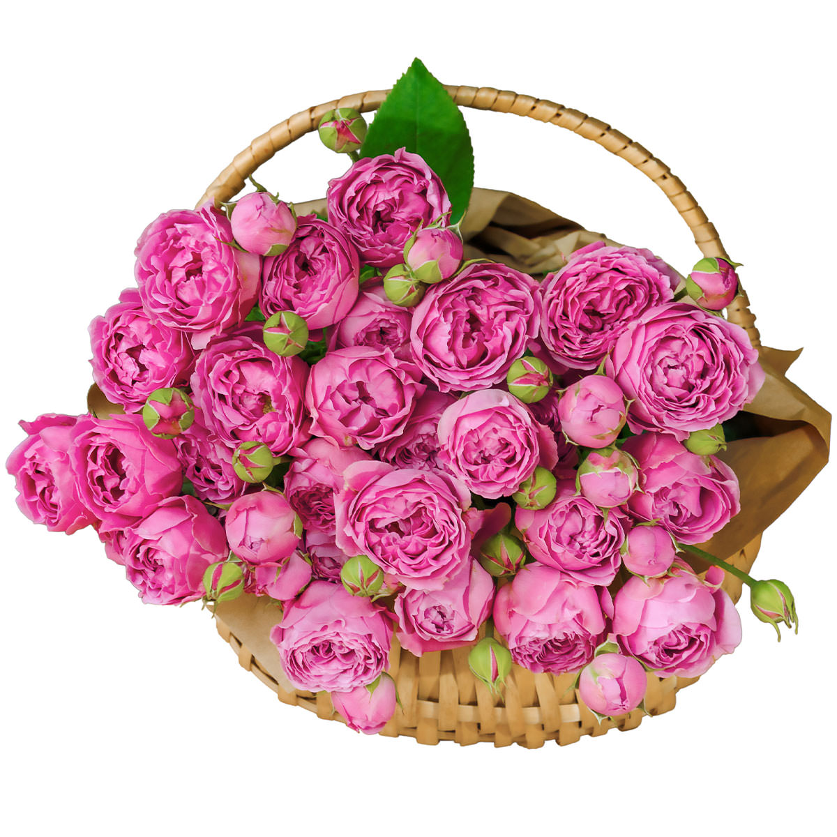 Роза пионовидная розовая. Упаковка (Корзина, оазис, ящик).