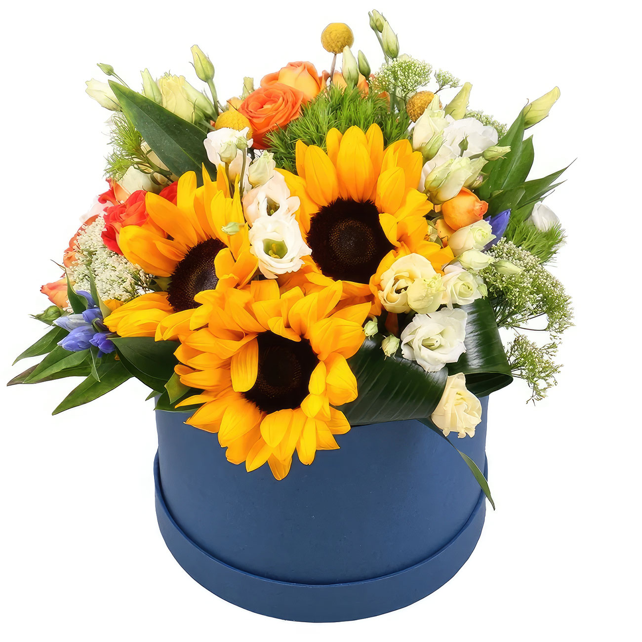 Цветы в коробке «Подсолнечное настроение» с доставкой по г Липецк: вы можете заказать букет в интернет-салоне цветов «Флормания» по цене от 2890 руб.